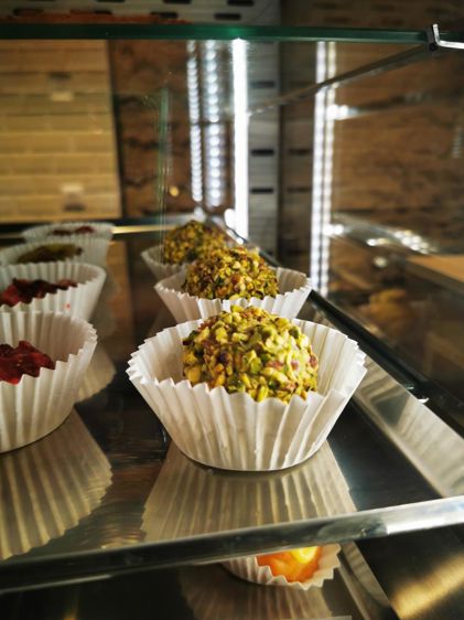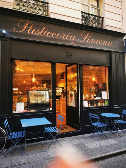 Simona et Marinela, le duo qui se cache derrière cette petite adresse chaleureuse, signe le parti pris de donner un air italien à cette première enseigne de la pâtisserie 100 % italienne de Paris : Pasticceria Simona. « En Italie, on s’arrête prendre un café plusieurs fois par jour, on échange quelques mots et on retourne travailler », raconte Simona Vignolo Pezziardi, qui mime le geste de poser une pièce sur le comptoir tout en prenant une tasse et en faisant de grands gestes. Professeur d’italien en entreprise et maman de trois enfants, Simona a décidé d’ouvrir « la pâtisserie qu’[elle] aime » à l’image d’une petite pasticceria où, quand elle retourne dans les Pouilles en famille, le rituel est de s’y arrêter pour retrouver le goût de l’Italie.