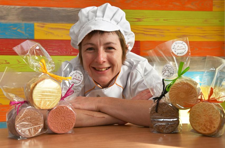 Si Géraldine a maintenant le sourire, elle a mis un peu de temps à trouver sa voie avant de revenir au « pays » et installer son labo à Saint-Amour (Jura). Après des études commerciales à Nice puis quelques années dans le secteur bancaire, « au final une erreur d’aiguillage », elle engage sa reconversion et passe un CAP pâtisserie, « parce que [mes] parents étaient restaurateurs ». S’ensuivent des apprentissages comme commis dans des lieux prestigieux : le Negresco ou le Relais et Châteaux de Terre blanche (Var). Puis elle ouvre un coffee-shop avec une amie de CAP. Un an plus tard, le succès n’étant pas au rendez-vous, elle retourne dans son village. Elle vend du miel et des huiles sur les marchés et une rencontre fortuite va être le déclic. « Un jour, une dame m’a offert les bricelets qu’elle fabriquait, je me suis souvenue de ceux que faisait ma grand-mère pour les fêtes de famille, alors j’ai décidé de me lancer. »