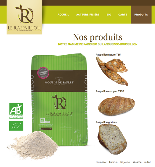 Seul le Moulin de Sauret commercialise les farines bio et locales Le Raspaillou. Raspaillou