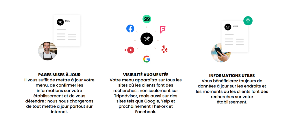 Grâce à « Menu Connect », une fois les données renseignées, elles sont diffusées à travers un réseau étendu de sites tels que Google, Yelp et bien d’autres.