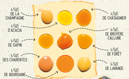 Bourdaine...) ou par des crus emblématiques (miel d’Acacia, de Tilleul...).