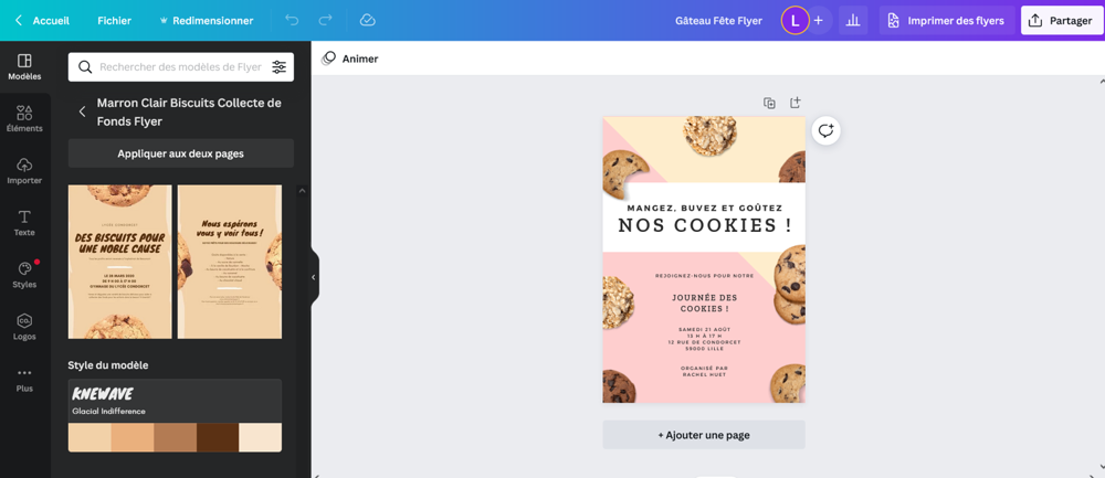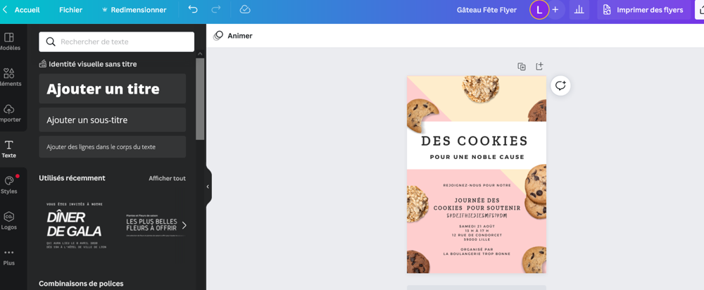 On tente un design : celui-ci est déjà proposé par Canva mais on peut le personnaliser