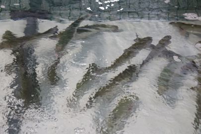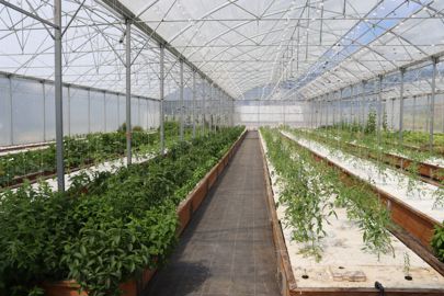 Sur 1 500 m² poussent des légumes feuilles, des herbes aromatiques et des fleurs comestibles. Posées sur des radeaux en plastique, les plantes plongent leurs racines directement dans l’eau qui circule dans de grands canaux. L’autre partie de la serre héberge six bacs à truites et un labo pour les transformer sur place.