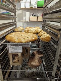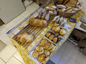 Manon fabrique des pains au format miche, qui se déclinent en campagne, aux graines, méteil, petit épeautre. En fonction des mois, elle propose aussi des brioches, des tartes au sucre, du pain de mie, des galettes bretonnes, des escargots, des roulés à la cannelle.