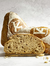 Le Pain Karabé est une invitation à un voyage sensoriel vers des saveurs chaudes et terreuses. Mélange polyvalent qui se décline sous différents formats, ce pain rustique offre un ancrage fort à la terre. Composé d’un savant duo de graines souchet-épeautre dont les racines sont profondément présentes dans les pays du pourtour méditerranéen, son goût est légèrement sucré avec des notes de noisette, sa texture croquante et granuleuse, et sa mie ambrée, alvéolée et moelleuse.