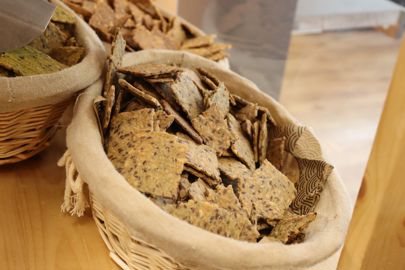 La gamme boulangère comporte quelques recettes orientées apéro : un pain aux olives de kalamata, quatre variétés de crackers permettant de valoriser le levain écarté… mais on y trouve avant tout une variété de pains et de baguettes 100 % au levain naturel ainsi que des brioches, pompes à l’huile et cookies. Pas de pâte feuilletée : « Je n’ai ni laminoir, ni congélateur ou surgélateur, et ce n’est pas terrible en termes de diététique », grimace celui qui surveille le dosage en sel et en sucre de ses recettes.