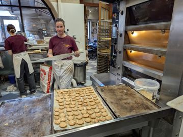L’équipe de production est constituée de trois boulangers, secondés par un apprenti et un stagiaire en période normale. Au total, le personnel représente dix équivalents temps plein.