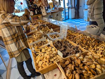 La maison ne fabrique pas de pâtisserie, mais des tartes aux fruits — mirabelles, quetsches, pommes —, toujours de saison. Et, bien sûr, toute une gamme de biscuits et de sablés qui font sa renommée : les bredele, les mannele et les lammele à Pâques ; des kougelhopfs, des bretzels, des brioches.