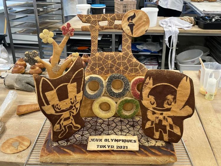 Création boulangère : 6 tartines individuelles de snacking, un pain décoré sur le thème des Jeux Olympiques de Tokyo.