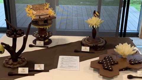 Dès 7h du matin, derrière la lourde porte du laboratoire de l’École de Paris des Métiers de la Table (EPMT), les neuf finalistes s’affairaient avec rapidité et précision à la fabrication des produits imposés et divisés en plusieurs catégories. Deux épreuves de chocolaterie, une épreuve de confiserie, une spécialité en chocolaterie ou confiserie, un montage commercial sur le thème de la biodiversité et pour finir, une présentation de l’ensemble façon « vitrine de magasin ». Temps pour réaliser l’ensemble : 7 heures, et pas une minute de plus.