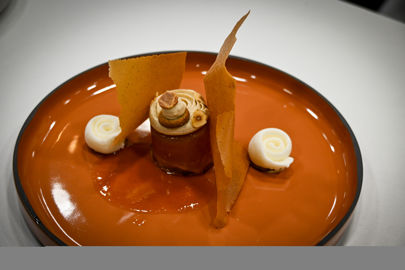Dans la seconde épreuve, il a rendu hommage au bocage normand, avec un dessert associant trois éléments : un sablé de Trouville subtilement citronné, une crème au yaourt et à la fleur d’oranger, ainsi qu’une mousse de fromage frais de Normandie douce et légèrement acidulée. Le tout était accompagné d’une sauce au citron adoucie à la fleur de sureau.
