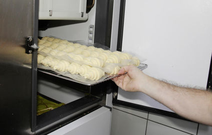 La technique du pré-poussé surgelé consiste à arrêter la dernière étape de fermentation (apprêt) juste avant la cuisson par un blocage au froid négatif. Les viennoiseries pré-poussées, dorées à l’œuf puis surgelées, sont ensuite décongelées et cuites au fur et à mesure des besoins du magasin. Pas de rupture à la vente, pas de perte en fin de journée, ce process optimise la productivité et consolide la rentabilité sur toute la gamme de viennoiseries levées et/ou feuilletées (briochettes, croissants, pains au chocolat, couques, etc.).