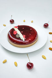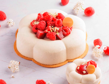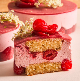 Véritable mariage entre la fraîcheur des framboises et le raffinement du sureau, ce gâteau baptisé Caprifolia, imaginé par Claire Heitzler, est composé d’une mousse légère au sureau, d’un sablé croustillant, d’un biscuit moelleux aux amandes et d’une marmelade de framboises. Un mélange de textures et de saveurs, le tout dans un équilibre exquis.