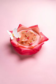 Représentant une rose, cette création, fruit de la collaboration entre le chef Étienne Leroy de la maison Lenôtre et Adriana Karembeu, symbolise le lien entre l’ex-mannequin et sa fille. Il porte d’ailleurs le prénom de cette dernière : Nina. Cette fleur renferme un moelleux à la vanille, un croustillant aux amandes, une compotée pêche blanche et litchi, un confit de pétales de rose et une crème aérienne parfumée à l’eau de rose. Pour parfaire le décor, des pétales en chocolat blanc sont disposés sur l’entremets.