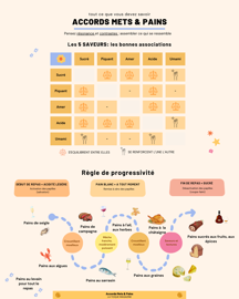 Pour accorder les mets et les pains, le principe cardinal est l’harmonie gustative et l’absence de fausses notes et dissonances (voir le schéma ci-dessous).