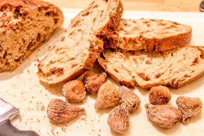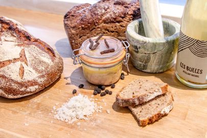 Accords pains et mets avec le foie gras : pains de figue et pain de campagne.