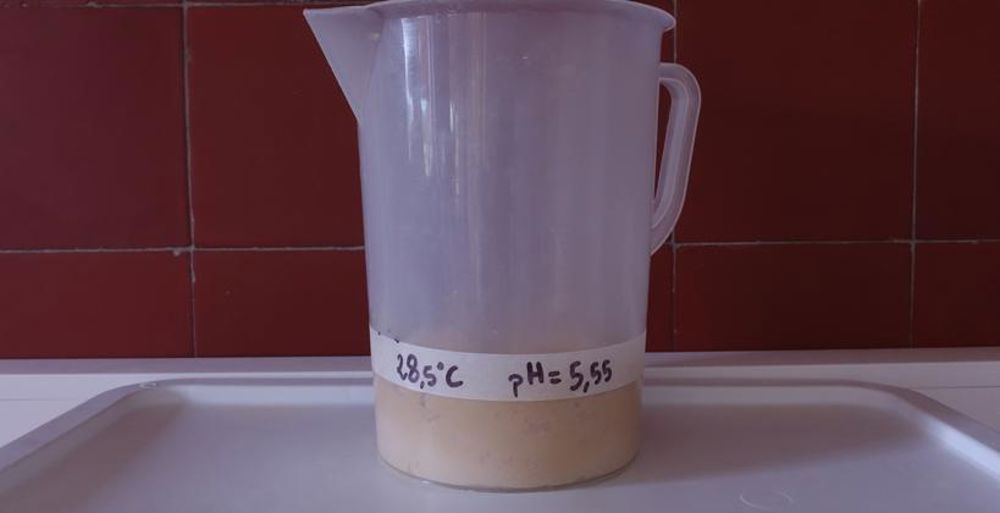 - 6h : Déshabillage du levain de conservation conservé a 18 °C et bagnetto (20 min, eau à 32 °C, sucrée à 3 g / l) ;
