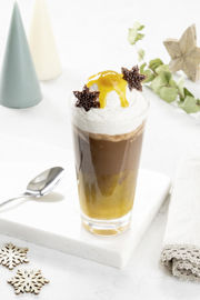 Garnir le fond d’une tasse (ou d’un verre transparent pour révéler les textures) de 20 g de marmelade réchauffée. Compléter avec le chocolat chaud. Pocher la chantilly sur le dessus.