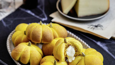 Découper 8 cubes de 10 g de Pavé d’Isigny Sainte-Mère. Placer un cube de Pavé d’Isigny Sainte-Mère au centre de chaque brioche. Refermer la pâte à brioche farcie et former une jolie boule.