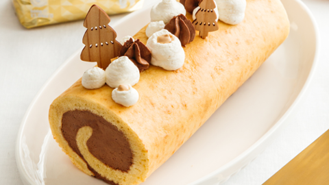 Décoller délicatement le papier et rouler le biscuit dans le torchon.