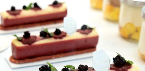 Gâteau Murmûre : compotée de mûres sauvages, onctueux à la vanille de Madagascar, croustillant amandes et mûres fraîches. © A. VALOIS