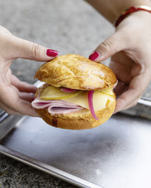 Chez Bao Bakery & Café, la vente se fait essentiellement à emporter. Seulement deux places assises sont proposées devant la vitrine, faute de place (la partie boulangerie s’étend sur moins de 40 mètres carrés, espace de production compris). Sur place, la carte est courte. Derrière la vitrine, se retrouvent trois types de pâtisseries. A commencer par les Bao, déclinés en cinq recettes dont deux salés (le Charsiu Bao au porc braisé dans sa sauce barbecue et son pendant veggie, le Veggie Charsiu Bao avec du haché végétal et des aubergines) et trois sucrés (le Lava Bao du moment avec un coeur coulant ; le Bao coco avec un coeur fondant au chocolat noir et le Peanut Bao avec un coeur coulant à la cacahouète et au caramel). La deuxième pâtisserie, plus originale et moins connue des palais français en provenance d’Hong-Kong se nomme le Pineapple Bun. Il s’agit d’une brioche moelleuse composée de farine, blé, sucre, beurre, oeuf, levure, avec un craquelin sur le dessus qui se réchauffe au four. Elle se décline en trois versions : nature, à la farce Charsiu et Charsiu Veggie et peut aussi servir de base à des sandwichs tant salés que sucrés : jambon/comté, crème au thé wiling/morceaux de poire et amandes concassées ou encore ganache au café/chocolat blanc et cacahouètes caramélisées. A côté de ces spécialités chinoises, se retrouve l’une des pâtisseries phares des boulangeries françaises : le cookie, que l’on retrouve sous trois saveurs : sésame noir et chocolat blanc ; amandes et chocolat/noix de cajou.