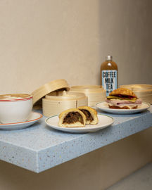 La devanture verte détonne dans cette petite rue du quartier de la Bastille à Paris. C’est là, au 10 rue Bréguet, sur le site d’une ancienne usine de vêtements et de boutons, que la Bao Family a ouvert il y a quelques mois Bao Bakery, boulangerie de quartier et coffee-shop. C’est la première fois que le groupe, créé par Céline Chung, ex-consultante d’origine chinoise et Billy Pham, ancien directeur de restaurants en franchises d’origine vietnamienne, se lance dans l’aventure du coffee-shop. Car la Bao Family, c’est d’abord et avant tout une enseigne de restauration spécialisée dans la cuisine des bao, ces petits pains cuits à la vapeur et farcis aux légumes ou à la viande dont les Chinois raffolent et qui se faisaient rare dans la capitale. Ils ont fait le succès du groupe qui s’est implanté en 2019 à Paris avec Petit Bao avant d’ouvrir Gros Bao en 2020 et Bleu Bao en 2021, chacun des restaurants ayant sa propre carte, sa propre ambiance, ses propres codes couleurs. En 2022, l’entreprise va plus loin et inaugure rue Bréguet un lieu hybride. Car à côté de la Bakery, se trouve le 4ème restaurant de l’enseigne, Bao Express, le plus grand restaurant du groupe, vu comme la synthèse des ambiances et des cartes des trois premiers établissements. Entre le restaurant et la boulangerie, l’espace est occupé par des Maîtres Bao qui façonnent les petits pains ronds. Une aubaine pour les passants et les clients du restaurant qui attendent qu’une place se libère. Mais aussi pour les clients de la boulangerie qui peuvent profiter du spectacle. Mais ce n’est qu’une partie de la production. Car depuis le développement de l’entreprise, le Groupe s’est doté d’une cuisine centrale installée à Ivry-sur- Seine qui assure la majorité de la production des bao.