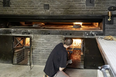 Allumés depuis 2 h 30 du matin, les deux foyers du four à bois crépitent. Derrière les portes de la chambre de cuisson, deux gueulards crachent des flammes puissantes. Ils chauffent la voûte et la sole de 10 m2 de l’un des plus grands fours de ce type récemment construit en Europe. Nous sommes en Belgique, à Charleroi, à 60 km au sud de Bruxelles. Le bâtiment qui abrite tout celan’est pas récent. On y réparait autrefois des locomotives véhiculant du charbon. « Quand cette industrie a décliné jusqu’à s’arrêter, toute la région a beaucoup souffert », explique le Français Luc Boulet. Dans l’atelier réhabilité tourne, depuis l’automne 2022, la manufacture Les Épis Sauvages, un site de production artisanale XXL.