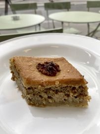 Au-delà de sa courte gamme salée, préparée minute et servie en continu de 12 heures à 22 heures, Gregory Guerguerian revisite également quelques spécialités boulangères arméniennes, dont son gata signature (lire encadré). Le Tcheurek, la fameuse brioche tressée de Pâques, se décline en version salée au zaatar. Empruntée à une amie pâtissière arménienne, sa recette de baklava aux noix et au miel est préparée sur une base de pâte sablée (et non filo), pour un dessert ultra-gourmand.
