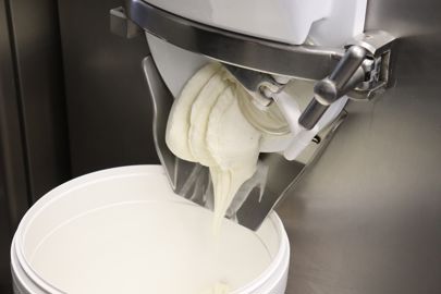 Ce matin de juin, Alexandre Albanese gratte justement des gousses de vanille de Madagascar pour en faire infuser les grains dans le lait cru livré le matin. Après une cuisson à 85 °C, l’appareil va refroidir et maturer une nuit à 4 °C pour laisser les arômes se diffuser et les stabilisateurs enrober les molécules d’eau. « Nous avons banni les monoglycérides d’acides gras d’origine animale et fait un gros travail de recherche et développement pour trouver un substitut végétal : pectine, amidon de riz, algues…, précise le glacier. Après la nuit, le mix sera versé dans la turbine et ressortira à - 4/- 6 °C. On ne choisit pas le pourcentage d’air incorporé : la glace foisonne naturellement, plus ou moins selon la teneur en fibres du produit. »