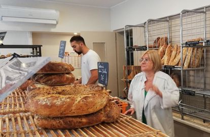 Le fournil produit aussi pains de campagne, aux céréales, complet, au son, biologique, au grand épeautre, au maïs, aux douze céréales, au chocolat, au miel, de mie, aux cranberries — baptisé Brexit, pour se moquer de nos voisins anglais. Il y a aussi le diabemix, pour les diabétiques ; le khorasan, et même des pains italiens, corses — ce dernier à la demande spéciale d’une cliente ; une spécialité maison, le crousticroq : avec des noix, des noisettes, des pistaches, des graines de lin bleu et jaune, de courge, et des amandes. La boutique propose très peu de pâtisseries ; uniquement le week-end, des tartes aux fruits de saison et quelques desserts traditionnels, comme le gâteau au sucre.