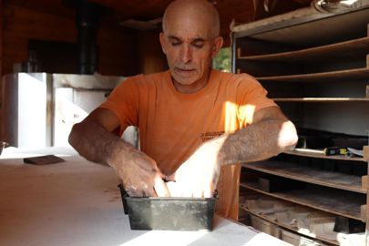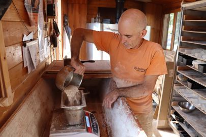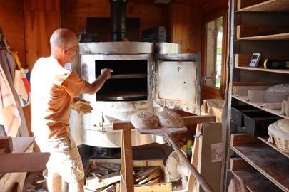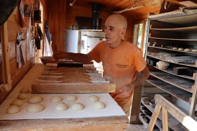 Pour éviter les déperditions de chaleur, il enfourne rapidement les 40 kg de pains. Tous moulés, pour optimiser la place dans le four, ils seront distingués grâce à leurs grignes différentes. Après les pains — nécessitant une température élevée et cuits à chaleur tombante —, il enfournera les brioches à l’huile d’olive, les fougasses et les biscuits, qui se contentent de 180 à 200 °C. Pour cuire en moyenne 150 kg de pains par semaine, le four consomme dix stères de bois par an. Les tarifs de ce bois de piquets d’exploitations agricoles, beaucoup moins élevés que ceux du bois de chauffage, n’ont pas augmenté. «En revanche, le prix du gasoil pour déplacer mon fourgon a presque doublé en cinq ans», constate le boulanger.