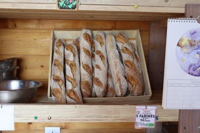 Mais l’homme était lucide : la clientèle d’un seul village ne suffirait pas à faire vivre une petite boulangerie au levain, bio et végane de surcroît… «En bougeant sur différentes communes, j’étoffe ma clientèle, indique-t-il. J’ai démarré avec quatre villages par semaine, mais j’ai calmé le jeu car je fatigue…» CAP en poche, après quelques jours passés chez des paysans-boulangers pour en apprendre plus, il s’est lancé avec une gamme de sept pains — dont un change chaque semaine —, des fougasses aux légumes et des brioches et biscuits véganes.