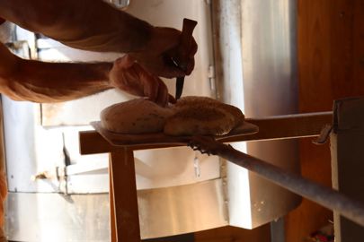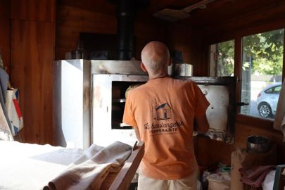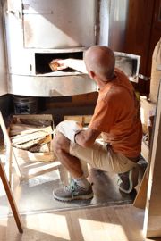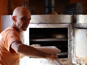 Après cinq à six heures de pousse, les pains pétris le matin sont prêts à être enfournés. Bien qu’équipé de thermomètres, l’artisan préfère sa méthode, « à l’ancienne » : il jette une poignée de farine dans le four : si elle brunit, c’est trop chaud ; si elle reste blanche, trop froid. Elle roussit : banco ! Avant d’enfourner, il jette des tasses d’eau sur la plaque : «C’est un four artisanal sans système de vapeur », sourit-il.