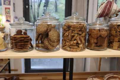 En venant la récupérer, ils peuvent se laisser tenter par des briochettes ou par la gamme de biscuits secs salés ou sucrés : certains clients achètent les crackers salés par kilo et les barres de céréales par dizaines !