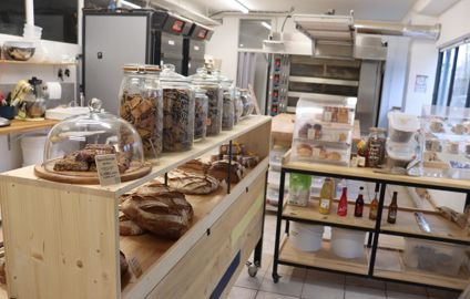 Du reste, la boulangère n’a pas de secrets pour ses clients. Il n’y a pas d’espace magasin dédié : en dehors des horaires d’ouverture, Elaine et sa salariée Florence utilisent tout l’espace pour la fabrication. Entre midi et 13 heures, puis de 16 heures à 18 h 30, le mobilier sur roulettes permet d’aménager en un clin d’œil un petit espace de vente devant l’entrée. « Les gens sont accueillis dans le fournil : ils voient que le lieu où est produit le pain est nickel car on y passe chaque jour l’aspirateur et la serpillière !» souligne Elaine.