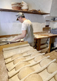 L’artisan est de ceux qui travaillent de façon très traditionnelle. Il pratique le pétrissage manuel parce qu’il aime le toucher, le parfum, la chaleur et la sensualité de la pâte à pain. Sous le plan de travail, lèvent dans des bacs en plastique les pâtes à pain de méteil brièvement passées au pétrin électrique. Ses farines sont moulues à la ferme des paysans meuniers Pierre Chatel et Marion Jullian, qui cultivent à Cucuron (84) des variétés de blés et de céréales de pays en Agriculture Biologique (AB). « Le sel est utilisé avec parcimonie, un gramme pour cent grammes de pain, bien en deçà des valeurs préconisées pour le secteur de la boulangerie — les 1,3 à 1,5 % décidés par la filière. Son apport est cependant essentiel à la fabrication du pain », indique-t-il sur Internet à ses clients.