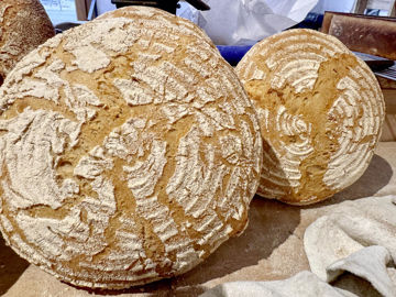 En juin 2023, le Père Linpinpain — nom soufflé par ses enfants — installe son étal le samedi matin sur le marché des producteurs de Pertuis. « Dès les premiers jours, une clientèle stable était là. Si bien que je continue de préparer pour ce marché soixante-dix kilos de pain le vendredi. » Sa gamme est courte mais efficace. Un pain bis, un complet, un seigle intégral, un méteil et un petit épeautre. Il prépare des petits pains individuels hydratés à 100 % au jus de raisin, et d’autres au cacao et au chocolat noir concassé. Des cookies fourrés et des pissaladières complètent l’offre.