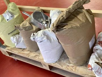 Sur un chariot trônant au centre, six farines seulement. De l’avoine sans gluten, du lin, du millet, du sarrasin, du teff et de la châtaigne. Uniquement des farines que Jérôme Vitart considère « d’origine », c’est-à-dire non modifiées par l’activité humaine. En d’autres termes : sans OGM. « La sélection des farines varie en fonction de la saisonnalité, poursuit-il. Nous accordons une importance toute particulière au terroir, à la paysannerie. C’est pourquoi nous aimerions nous approvisionner autant que possible en local, mais ça n’est pas possible pour l’instant en raison de notre cahier des charges très strict. » Par exemple, Lux Panem a tenté de se fournir auprès d’un moulin basque produisant de la farine de châtaigne, mais ce dernier broyait du blé dans les mêmes locaux. Incompatible avec des pains à destination, entre autres, de malades cœliaques. Les farines du moment proviennent donc d’Ardèche, de Normandie, de Bretagne, d’Indre-et-Loire…
