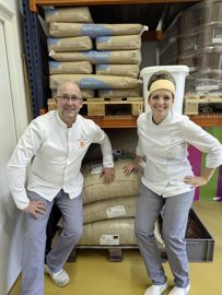 Le patron fait visiter les lieux, à la surface de 1 000 m2 : le garage pour les deux véhicules de livraison, la chocolaterie, les chambres froides, les lieux de stockage — dont celui dédié au chocolat, construit en 2012 —, la partie “emballages”, deux bureaux, et le vaste local de fabrication visible depuis le comptoir du magasin. Le dernier agrandissement a permis de construire une glacerie, avec un maître glacier qui se dit très satisfait en raison de la praticité du local. Un investissement de 300 000 €.