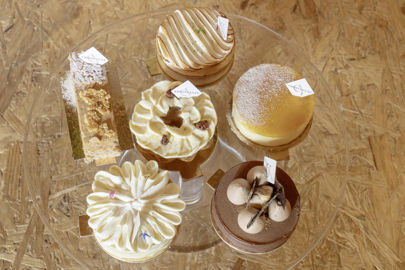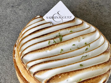 Sabrina Guez aime travailler au labo et n’a pas l’intention de changer sa formule ! Dans le 7e arrondissement de Marseille, la cheffe pâtissière n’a pas de boutique mais un laboratoire-atelier commun à l’Assiette des chefs de son frère (chef traiteur) et de sa belle-sœur. Dans cet espace de création et de partage, Sabrina Guez s’adonne à ses recherches et à ses productions ; elle forme des apprentis et reçoit ses clients. L’entrée est chaleureuse avec ses murs couverts de panneaux de lamelles de bois orientées. Les étagères présentent ses confiseries et confitures maison. On y remarque des livres inspirants, comme les Secrets gourmands de Pierre Hermé ou Tourbillon de Yann Brys. Discrète, la cheffe conçoit des desserts gourmands avec beaucoup de précision, et ils servent sa réputation.