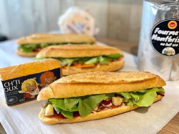 Les sandwichs sont proposés à l’unité ou en formules : une fugitive à 8,50 € avec un sandwich au choix, une boisson et une viennoiserie (brioche, croissant, pain au chocolat) ; et une goulue à 10 € comprenant un sandwich aux fromages locaux, une boisson et un dessert (cookie, chausson, etc.). « Nouveautés du printemps, les cookies décorés de 220 grammes cartonnent, notamment auprès des enfants », sourit Florence qui a renoué avec les douceurs locales, telles que le palet de dame, un biscuit tendre, glacé au sucre.