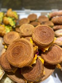Le caramel, signature, se retrouve dans diverses créations, comme le rouen-paris aux pommes. Il est aussi vendu en pot, entre autres références proposées en picking en magasin. Stratégiquement positionnés, sablés en sachets, meringues, granolas, tuiles ou nougatines invitent irrésistiblement à l’achat d’impulsion. Depuis 2022, ces créations bénéficient d’une vitrine de choix à Rouen, au sein d’une institution pâtissière située dans un bel immeuble d’angle du centre-ville. Un investissement réalisé à la suite d’une première implantation en corner dans un grand magasin, où l’artisan s’est vite retrouvé à l’étroit.