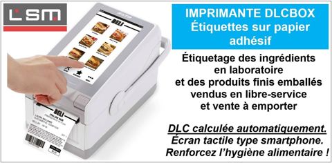 Grâce à son horloge interne, l’imprimante DLCBOX calcule et imprime automatiquement les dates de durabilité minimale et limite de conservation de vos produits, sur papier adhésif. Simple et intuitive, elle facilite vos ventes grâce à une présentation soignée et lisible, et renforce l’hygiène alimentaire ainsi que la traçabilité des ingrédients en laboratoire.