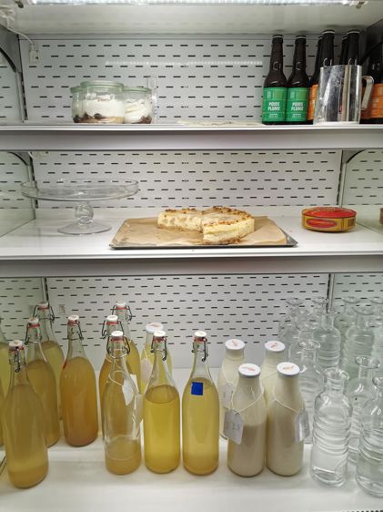 Parmi les recettes, il y a les kéfirs maison à base de grains de kéfir, de fruits et de jus de fruits, dont un Ginger Ale obtenu avec l’ajout du sirop de gingembre ; le Tepache (voir recette à suivre), une boisson d’origine mexicaine, anti-gaspillage par excellence, fabriquée à partir de sucre et de pelures d’ananas bio, la limonade de sureau (de mi-mai à mi-juin). Ces boissons ne prennent que 48 h à être élaborées, puis sont conservées dans une grande citerne au frais. Les kombuchas, réalisés à partir de fruits de saison pressés et une souche scoby (acronyme anglais pour une culture symbiotique de levures et de bactéries) prennent une semaine à être obtenus et sont préparés au fur et à mesure. Le boza, à base de millet originaire de l’Est de la Méditerranée, proche du chocolat chaud, est la plus complexe à réaliser.