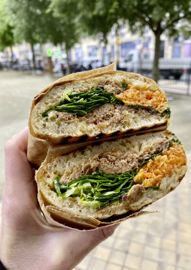 Car rien ne vous empêche de fabriquer vos propres produits semi-finis — une recette signature a minima, comme une tartinade, à intégrer à vos bowls, sandwichs, salades… et à proposer en dips à emporter pour les apéros et pique-niques d’été. Fondateur de la boulangerie-pâtisserie Panade (Paris 15e), le (Top) chef Merouan Bounekraf y vend ses “thonpenades” (tapenade au thon) et autres “arthonchaunades”, coproduites avec la conserverie corse Mare & Gustu.