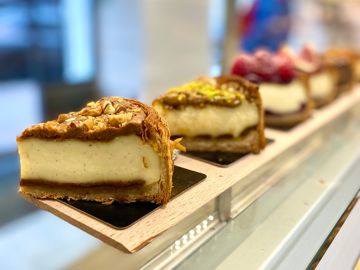 Rayon sucré, la part belle est faite aux flans, ultra-tendances en ce moment. Longuement peaufinée, leur recette de base est toujours la même, en vue de rationaliser la production : une pâte à croissant finement croustillante grâce à une précuisson, et un appareil à la vanille de Madagascar. Variant au fil des saisons, les sept parfums disponibles chaque jour sont apportés par des inserts et/ou des toppings (fruits, confits, pralinés, etc.). À la suite de la publication d’un compte influent sur les réseaux sociaux, le flan s’est vite imposé comme leur produit phare.