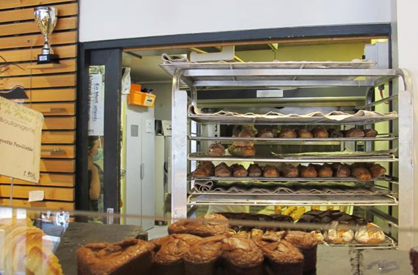 À l’arrière, le magasin s’ouvre sur le four. Plus petit (100 m2), le site de Pluvigner bénéficie aussi d’une vue sur le fournil depuis l’espace de vente. Seuls les pains traditionnels y sont encore fabriqués, la production de tous les spéciaux, également en vente dans un réseau de magasins bio, ayant été rapatriée sur Brec’h. À l’inverse, la production des pâtisseries a été centralisée à Pluvigner pour optimiser l’espace, « ce qui génère des déplacements entre magasins et toute une organisation logistique », déplore toutefois Maxime Le Blaye, de son propre aveu un peu à l’étroit dans ses locaux actuels.